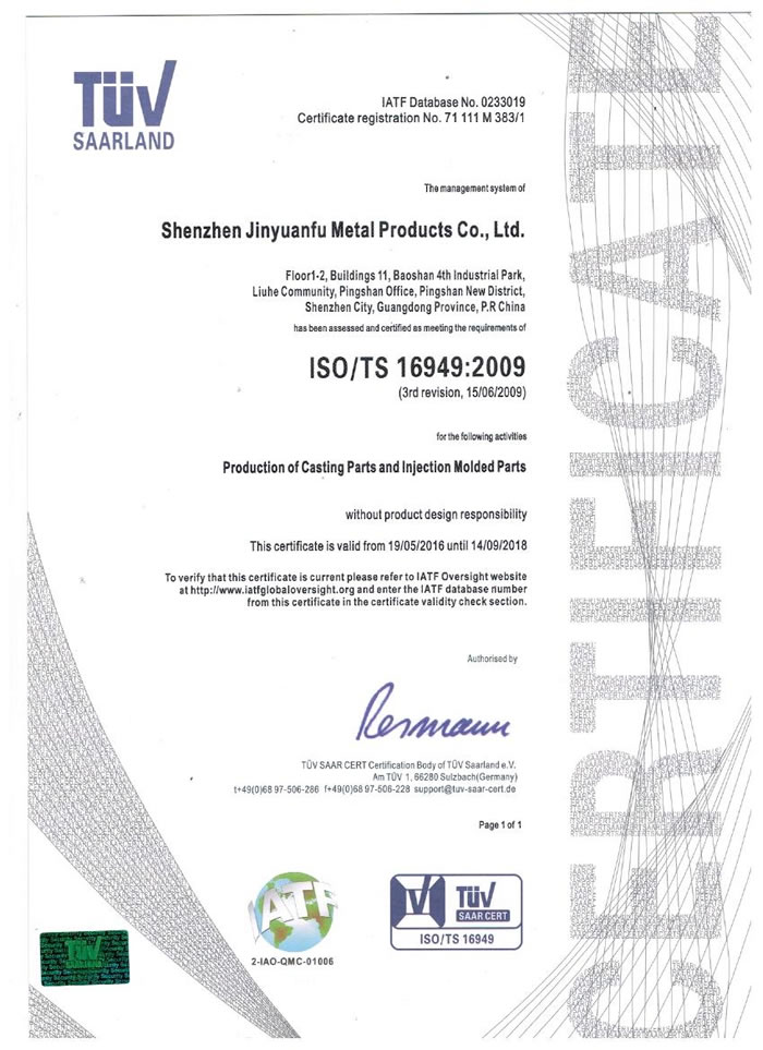 金源福已通過ISO/TS16949國際質量體系認證,專業(yè)生產鋅、鋁、鎂合金壓鑄件,為各行業(yè)定制生產壓鑄件,產品遠銷到日本,歐美,澳洲等不同的國家。